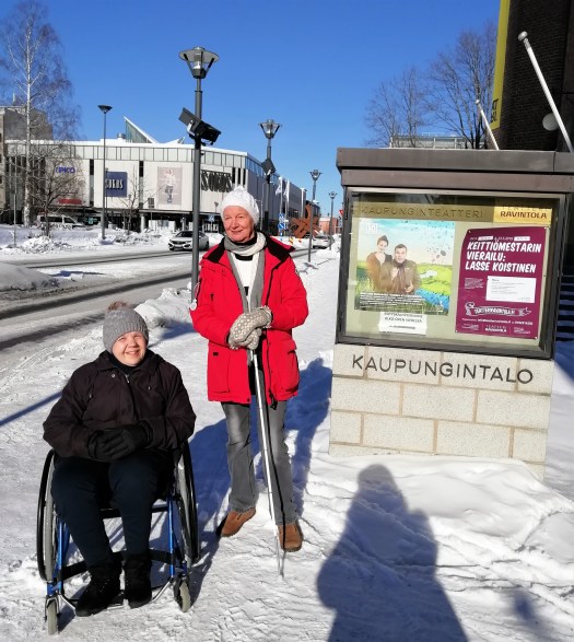 On Wednesday March 13, Culture Open Project Coordinator Henna Karhapää and an expert group assigned by the Joensuu Disability Council: Matti Maukonen, Pirjo Hoikkanen and Raija Kortelainen, examined the accessibility of Joensuu Main Library and City Hall.