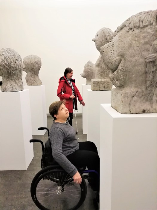 At the Art Museum, doorsteps have been removed from the rooms connecting the permanent exhibition spaces, which will ease movement from room to room. The disability experts felt that some exhibition rooms had lighting that was too dim for the art works to be properly viewed. The large carpets in some exhibition rooms made it difficult to move with a wheelchair, while the hard of hearing member of the expert team noted that the carpets help to mute the echo in the rooms.