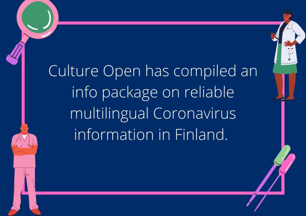 In this article Culture Open has compiled a list of reliable information sources on the COVID-19 epidemic provided by the Finnish authorities in many different languages.